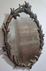 EergisterenCatawikiHeel België - Spiegel - BronsBronzen tafelspiegel in rococo-stijl uit het begin van de 20e eeuw, oorsprong spanje, buitenafmetingen 35 cm hoog en 21 cm breed, binnenafmetingen 17 x 11,5 cm, gewicht 1,3 kg, in goede gebruikte staa