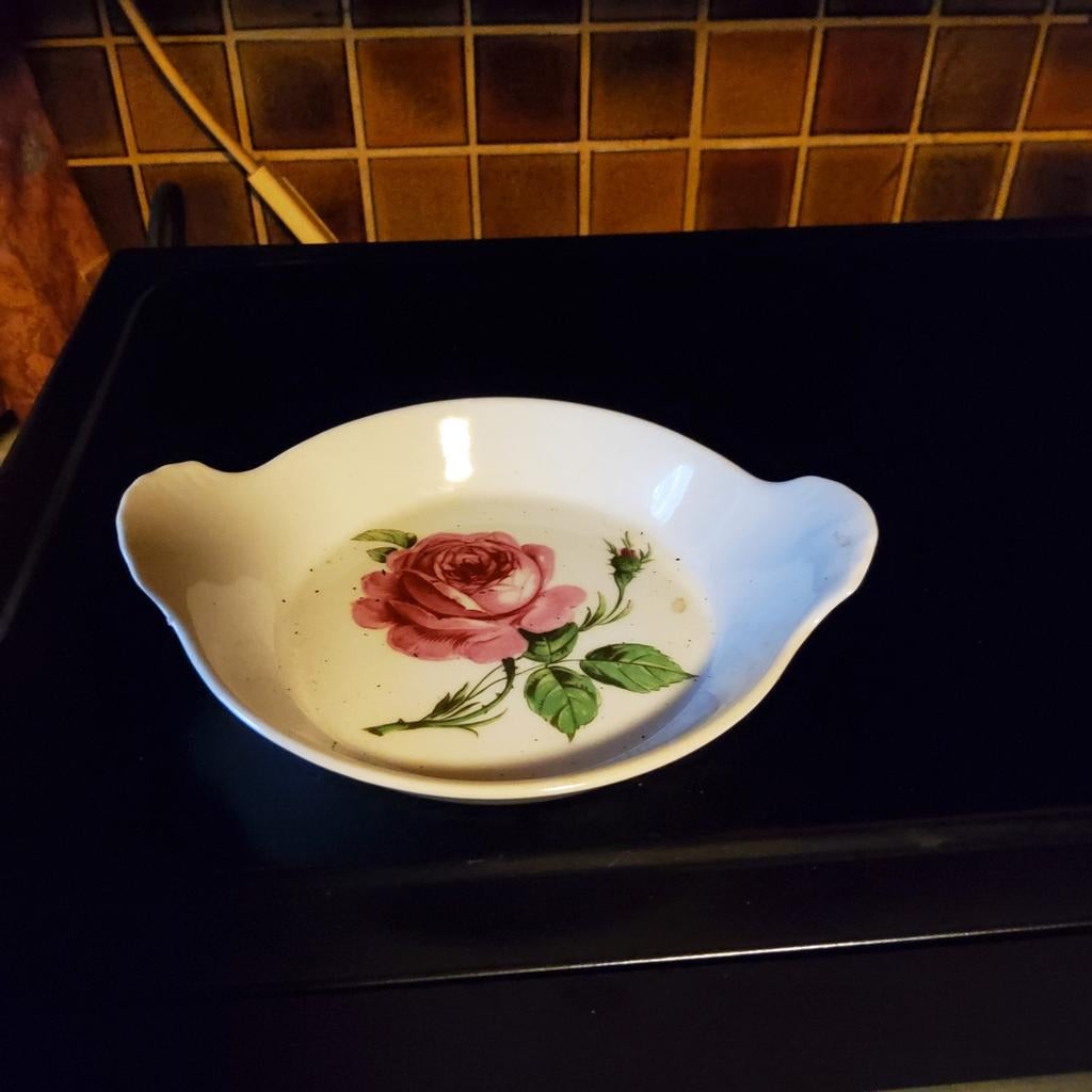 25 nov 25KarelZandhoven - serveerschoteltje in porcelein ApilcoApilco : schoteltje met roos diameter : 13 cm af te halen in 9660 brakel of verzending tegen kostprijsOphalen of Verzenden