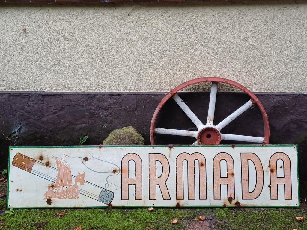 30 sep 24Jimmy van ZeelstTurnhout - Emaille reclamebord Armada 1961Emaille reclamebord armada 1961 met oude sticker/zegel op ongeveer 1m50 op 50cmGebruikt Ophalen