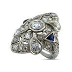 Een art deco ring heeft vaak strakke lijnen, geometrische vormen en een vleugje glamour. De stijl integreert klassieke motieven met moderne elementen, en kan rijkelijk versierd zijn met edelstenen en intricate details.
