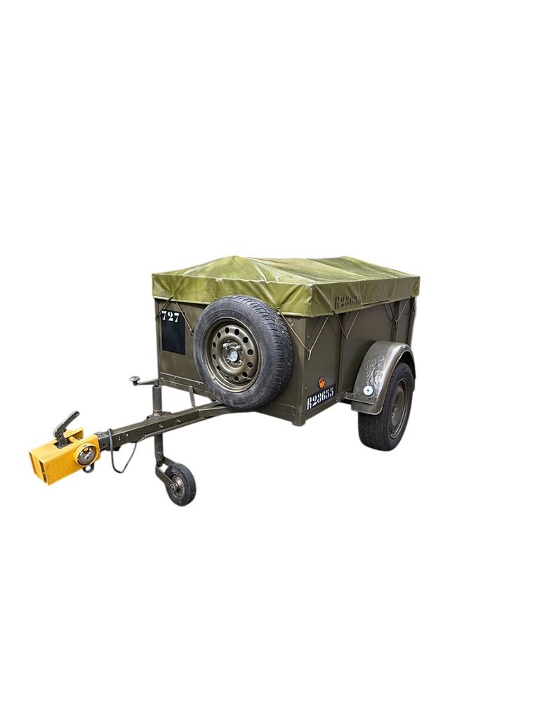 - Oldtimer Legeraanhangertje met nieuw zeildoekSupermooie aanhanger ex militaire- leger, volledig gerestaureerd. Dateert uit de jaren ‘40 / ‘50. Alle verlichting is vernieuwd en dus perfect kon werkend, zo goed als nieuwe op maat gemaakte bache -Gebruikt Ophalen