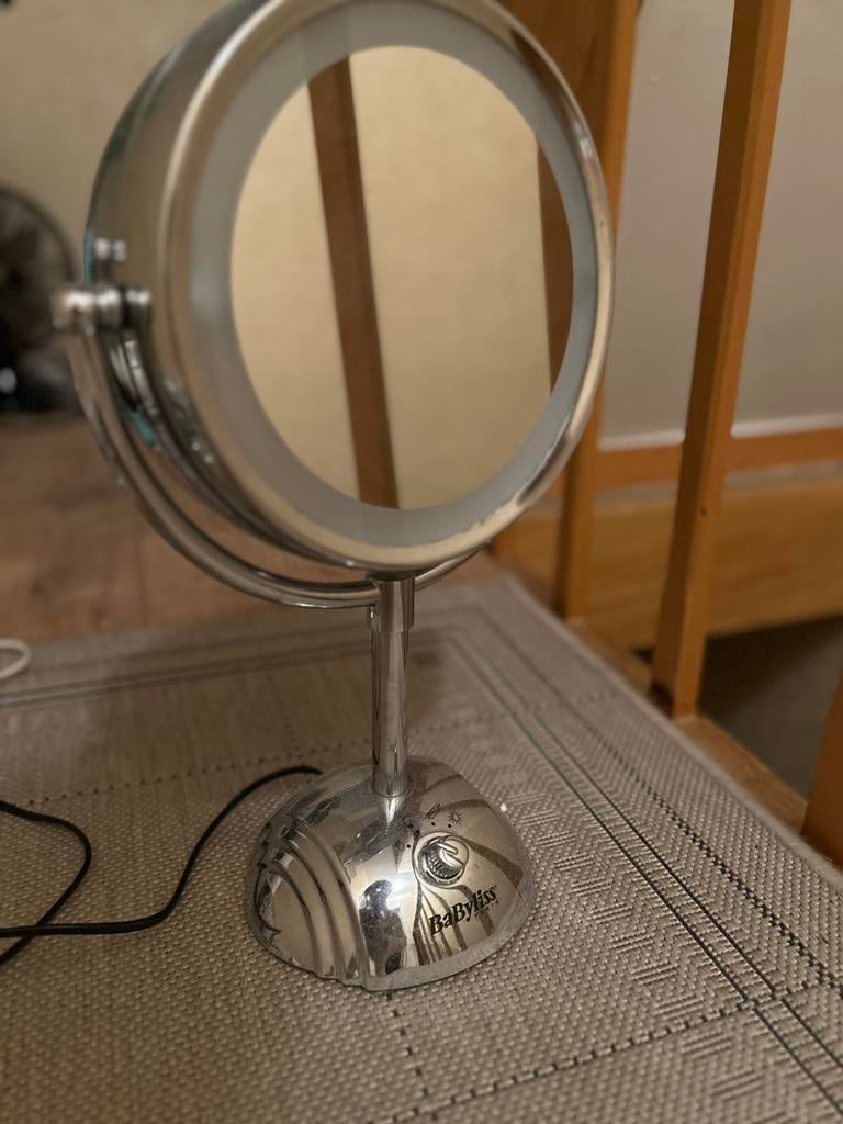 4 jan 26MargaScherpenheuvel-Zichem - Make-up spiegel van BabylissMake-up spiegel van babyliss met verlichting. Draaispiegel midden met vergrootglas.Gebruikt Ophalen of Verzenden
