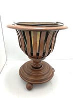 - Jardinière - Bois, Laiton - bac à fleursPlanteur en bois vintage avec bac en laiton, fabriqué aux pays-bas, période estimée 1980–1990, dimensions 42 × 38 × 38 cm, poids 3,7 kg, en bon état avec peu d’usure.