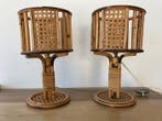 - Nachtlampje (2) - Rattan, BamboeSet van twee vintage lampen van rattan en bambu in beige, mid-century modern stijl, 30 cm hoog, 15 cm breed en 15 cm diep, met één fitting per lamp, gemaakt in italië in de jaren 1970–1980 en in goede