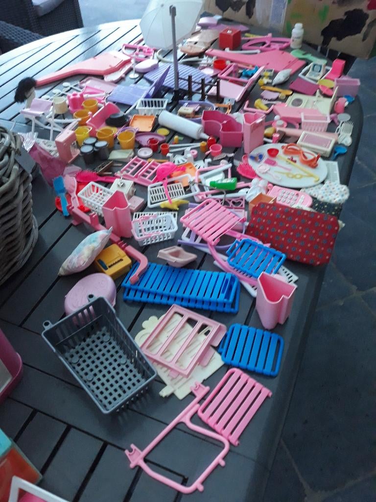 VandaagDimi382Temse - Barbie spulletjes: zetel, bed, tafel, schoenen,…Spulletjes die bij barbie horen: tennisracket, sportzak, schoenen, kammen,… ben ook in het bezig van 30 barbies en extra kleding.Zo goed als nieuw Ophalen of Verzenden