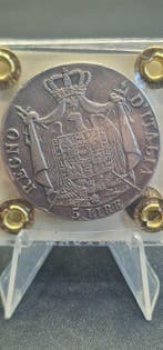 8 apr 26DesignplaatsLeusden, NL - Italië, Koninkrijk (Napoleontisch) Napoléon I (1804-1814). 55 lire 1810 munt van napoleon i, koninkrijk italië (1805–1814), munthuis bologna, zilver, 25 g, 36,06 mm, periziata bb, geclassificeerd als r zeldzaam, montenegro 78 referentie, professioneel taxatier