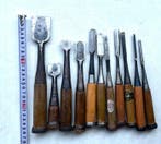 EergisterenTopadvertentieCatawikiHeel België - Werkgereedschap (11) - Japans beitelsSet van 11 gebruikte japanse beitels van staal met houten heft, oorsprong japan, afmetingen circa hoogte 27 cm tot 16 cm, breedte 3,8 cm, diepte 0,4 cm, totaal gewicht 1,39 kg; toestand redelijk met i
