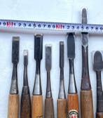 - Werkgereedschap (11) - Japans beitelsElf japanse beitels van staal, gebruikt en in redelijke staat met lichte roest en één gebroken mespunt, oorsprong japan, daterend uit 2000–2010, afmetingen circa h 26 cm x b 3,8 cm x d 0,4 cm, totaalg