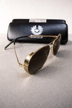 5 nov 25pierreOverijse - Belstaff - Archer - Lunettes de soleilLunettes de soleil belstaff archer, fabriquées au japon, monture or et noir, verres zeiss, métal, plastique et verre, taille unique, avec étui rigide.Nieuw