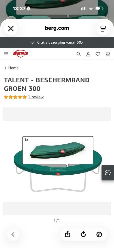 12 apr 26saar van pottelbergheAntwerpen - BERG trampoline beschermrand 300 cm , nieuw in doosNieuwe originele berg beschermrand (padding) voor trampoline, diameter 300 cm (10 ft). Gekocht als reserveonderdeel maar nooit gebruikt, zit nog in de originele verpakking. - Merk: berg - type: talentNieuw Ophalen of Verzenden