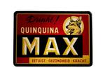 - Blikken Reclamebord MAX drinkt QuinquinaBlikken reclamebord max quinquina uit 1950. Drink quinquina voor eetlust, gezondheid en kracht. In de belgische kleuren met als logo een herdershond - duitse scheper. Vintage reclame bord gemaakt doorZo goed als nieuw Ophalen of Verzenden