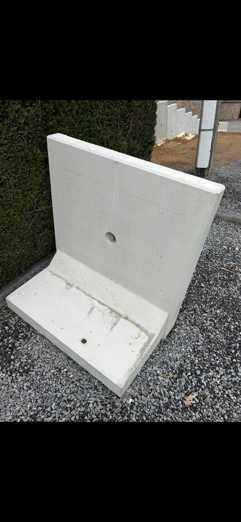 7 apr 24pol simoensHooglede - Keerwanden / L-elementen in betonTe koop betonnen keerwanden van lengte 1 m. De elementen zijn 4 cm dik. Binnen hoogte is 44 cm, buitenhoogte is 50 cm en de voet is 20 cm.( Ook hoogte 40cm verkrijgbaar) veel eenvoudiger te plaatsen dNieuw Ophalen
