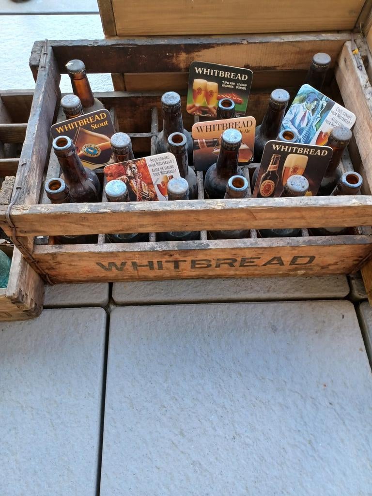 10 mrt 26Guy HenderickxMere - Oude bierbak met bierflesjesOude bierbak en oude bierflesjes van verschillende brouwerijen, de namen van de brouwerijen zijn in de flesjes geslepen (gestraald), de bak en flesjes zijn in uitzonderlijk goede staat. Prachtig als dOphalen