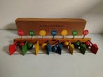 - Samaritoga - A.R.C.O. Milano - Italia 1950s - Jouet - ItalieSamaritoga - a.r.c.o. Milano - italie 1950s, jeu de table en bois avec emballage d’origine, incluant une base en bois avec des cibles colorées numérotées de 50 à 500, billes et lanceurs, dimensions 45