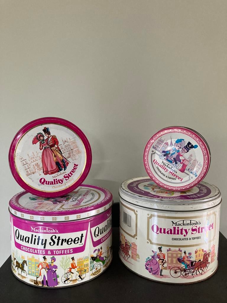 - 4 Mackintosh’s vintage blikken dozen/ Quality Street4 mooie, vintage mackintosh’s blikken/ quality street, snoeptrommels. Prachtige staat.Ophalen
