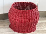 - XL Rotan Handgeweven Bloemen / planten of opbergmand -Xl corbeille en rotin tissée à la main pour fleurs/plantes ou rangement, en rotin, style vintage des années 1990–2000, origine europe, rouge, dimensions environ 40 cm de haut sur 48 cm de large et 40