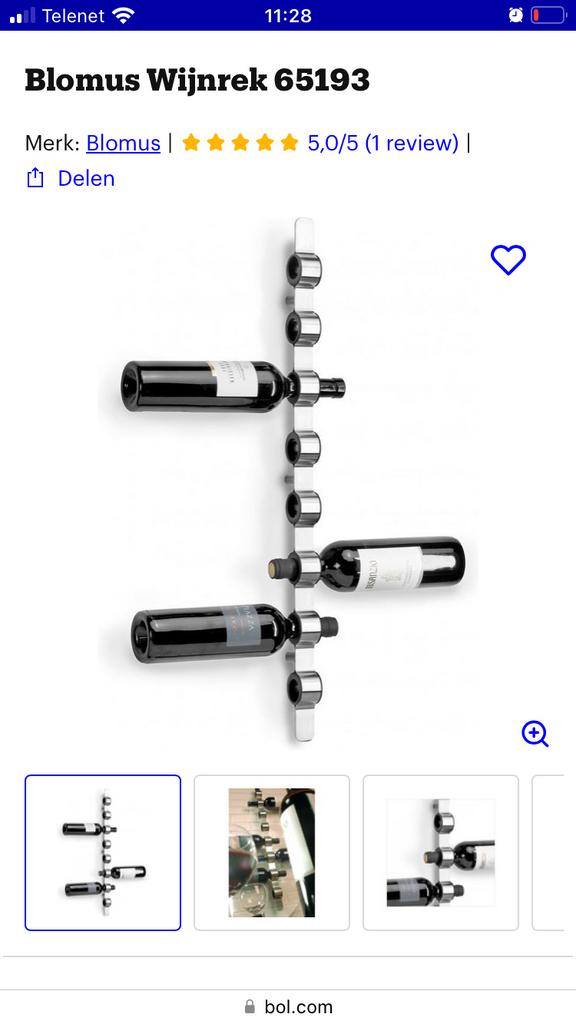 - Blomus wijnrek nieuwNieuw in doos nieuwprijs 77 euro. Afmetingen: h 74 cm, b 3,5 cm, d 7 cm materiaal: roestvrij staal mat, kunststof inclusief montagemateriaal voor 8 flessen de horizontale opslag voorkomt het uitdrogenNieuw Ophalen of Verzenden