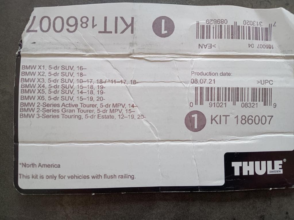 - THULE 186007 kit voor BMWThule 186007 kit voor thule bars voor bmw x1 x2 x3 x3 x4 x5 x6 bmw series 2 en 3 (zie foto voor meer informatie).Zo goed als nieuw Ophalen of Verzenden