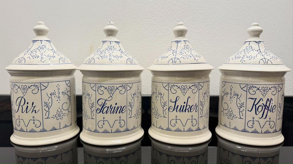8 mrt 26Goofy1977Leuven - BOCH COPENHAGUE. SUIKER, RIJST, MEEL, TAFELAFVALBoch copenhagen sugar. Rijst. Meel, vuilnisbak voor op tafel. Afmetingen hoogte: 20 cm diameter: 15 cm. In topconditie.Ophalen of Verzenden