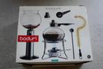 De Bodum Santos is een unieke, stijlvolle koffiezetter die werkt met het zogenaamde vacuüm zetten. Het heeft twee glazen bakjes die op elkaar zijn geplaatst en door middel van stoomdruk de koffie maakt. Het ontwerp is niet alleen functioneel, maar ook een lust voor het oog, perfect voor in de keuken.