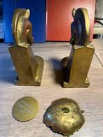 VandaagCatawikiHeel België - Figuur - Pferdekopf Buchstützen mit Schale und Medaille (4)Goudenkleurige messing boekensteunen in de vorm van een paardenkop, een set van vier, art deco stijl, modelnaam pferdekopf buchstützen mit schale und medaille, uit duitsland, daterend uit 1950–1960, a