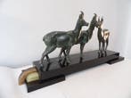 15 aug 25calogeroEvere - sculptuur, Art Deco bronzen chiparis met twee herten. - 37Geschatte periode art déco; materiaal brons op marmeren sokkel; sculptuur van demetre chiparus met twee herten op een zware marmeren sokkel, gesigneerd, in goede staat. Sculptuur van demetre chiparus