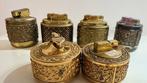 - Messensteun (12) - Verguld bronsCadeauverpakking met 12 messenhouders van brons, gepresenteerd op een satijnen achtergrond.hondenmodel met verschillende hondenrassen.zeer mooi formaat en kwaliteit.type art deco.art de la tablezeldza