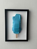 29 mrt 26EntreplusPutte - Henevor - Porsche 911 Singer Lollipop | Light blue - White |Henevor’s met de hand gesculptuurde en beschilderde harsentafelwandsculptuur porsche 911 singer lollipop in lichtblauw en wit, ingekast achter plexiglas in een zwarte lijst, circa 31 × 21 cm, diepte 1