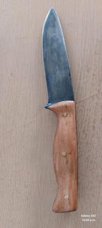 Om je bushcraft mes goed te onderhouden, is het belangrijk om het regelmatig schoon te maken na gebruik. Spoel het af met water en gebruik een zachte doek om het droog te vegen. Controleren op roest is ook cruciaal; als je roestplekjes ziet, gebruik dan een speciaal roestoplossingsmiddel of schuurpapier om deze te verwijderen. Daarnaast moet je het mes af en toe slijpen met een slijpsteen of een slijper om de scherpte te behouden. Vergeet niet om het handvat en de lederen schede, als je die hebt, ook goed te onderhouden tegen slijtage.