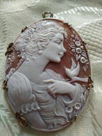 TopadvertentieCamée - 18 carats Or jauneTopadvertentieGisteren - Sans prix de réserve - Camée ArgentUn pendentif camée en fil d'argent doré (925) pour dames, fabriqué en italie, poids 20 g, dimensions 8,2 × 6,7 cm, en excellent état avec traces minimes, sans rapport de laboratoire.