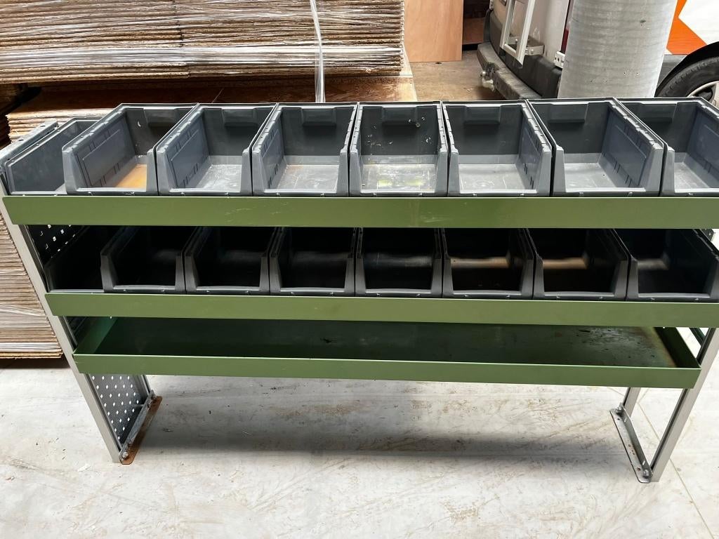 - inrichting rek voor camionetteStevig rek voor inrichting van een camionette met 14 materiaalbakjes. 105Cm hoog x 165cm breedZo goed als nieuw Ophalen