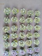 20 mrt 26trhTremelo - Capodimonte - Tafelmiddenstuk (50) - PorseleinEen set van 50 capodimonte porseleinen rozenbeeldjes, 25 geel en 25 roze, uit de jaren zestig, elk ongeveer 6 cm breed, 4 cm hoog en 5 cm diep. 50 Rozen, 25 geel en 25 roze, capodimonte, jaren zestig.