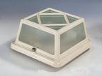 EergisterenpitLa Louvierehandschaar met hoog profielMoet nu wegOphalen GebruiktLa LouviereEergisteren - Ismos Italy - Plafondlamp - Italië • Zware Industriële lampIsmos italië zware industriële wand- of plafondlamp, model 1320, crèmekleurig, met een wit gelakt metalen frame en dik gestructureerd glas, circa jaren 1950–1960, 1460 g, afmetingen 10 × 19 × 19 cm, é