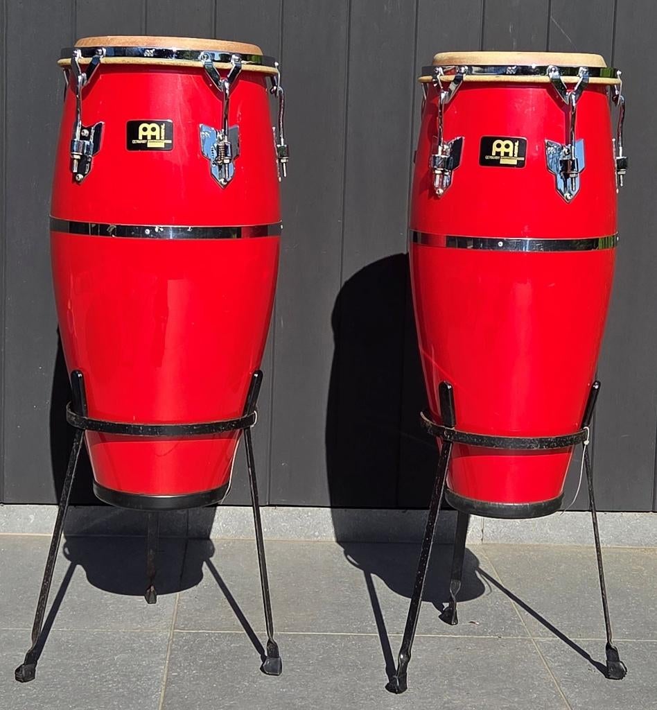 - 2 Conga's Meinl - Glasvezel - Rood - met voet.In goede staat. Gebruikssporen. Diameters membraan : 24 & 27 cm. Mag weg omdat er niet meer wordt op gespeeld.Gebruikt Ophalen