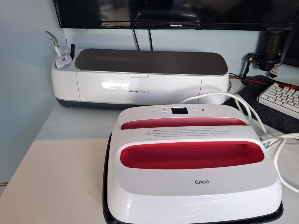 - Cricut maker + cricut easy press 2Cricut maker en cricut easy press 2 in goede staat samen met materialen zoals sticker papier en kleding papier.Zo goed als nieuw Ophalen