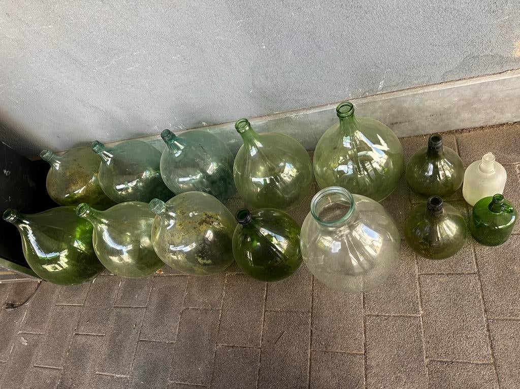 - Grote Dame Jeanne flessen / flesvaas / gistfles55 euro per stuk, verschillende beschikbaar. Van donkergroen tot lichtgroenOphalen