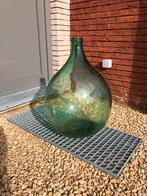 Een damejeanne is een grote glazen fles, vaak met een kegelvormige basis en een smalle hals. Ze zijn meestal gemaakt van amberkleurig of groen glas, wat helpt om de inhoud te beschermen tegen licht. Deze flessen zijn vaak met de hand gemaakt en kunnen versierd zijn met verschillende patronen. Ze hebben een ruime inhoud, wat ze ideaal maakt voor het opslaan van vloeistoffen zoals wijn, evenals voor decoratieve doeleinden.