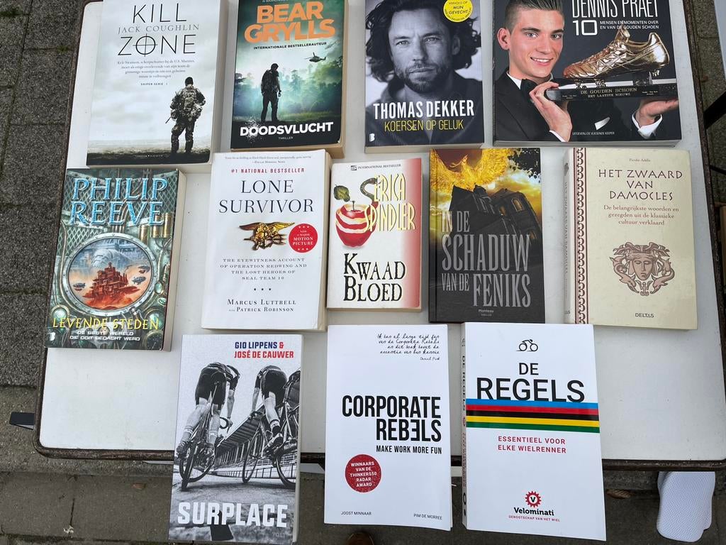 - Biografieën, militaire thrillers & wielrenner boekenBiografieën, militaire thrillers & wielrenner boeken: kill zone, jack coughlin. Doodsvlucht, bear grylls. Koersen op geluk,thomas dekker. Dennis praet, mensen en momenten over en van de gouden schZo goed als nieuw Ophalen of Verzenden