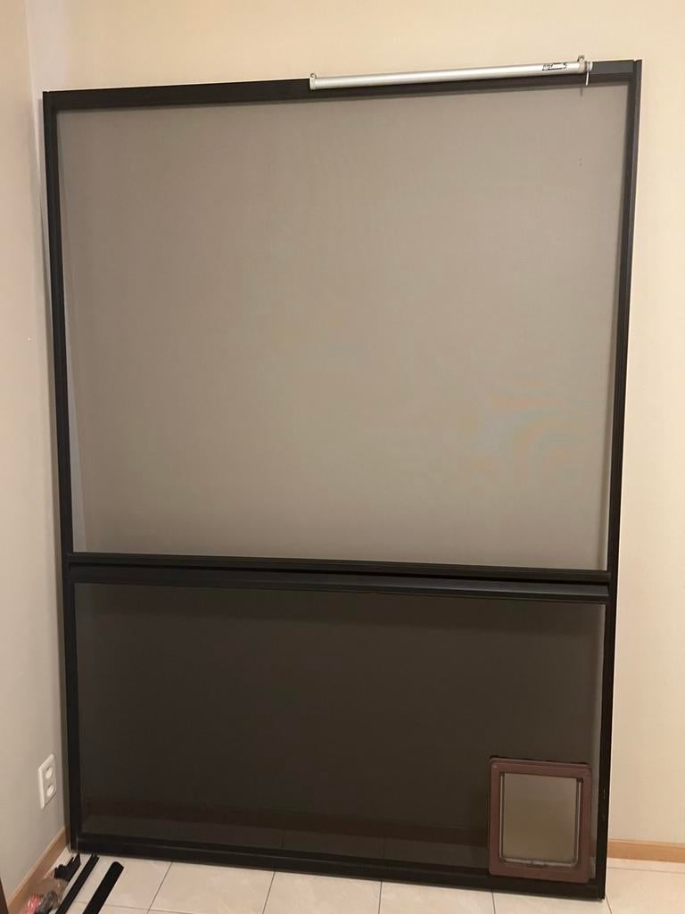 GisterenT.Geel - Hondenluik in deurgewerktTussendeur om in schuifraam of in deuropening te plaatsen voor de hond of kat deur zelf 50cm breed en 2.10M hoog ,luik 40cm hoog en 20cm breedGebruikt Ophalen