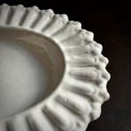 13 apr 26katrienLeuven - Schotel - Aardewerk - Diep bord op voet in witte faïence vanEen ovale holle plaat van witte faience uit nevers, frankrijk, daterend uit de tweede helft van de 17e eeuw, afmetingen 35 x 29 x 5 cm, met een breed gegroefde en crenelé rand en lichte ouderdomsspore
