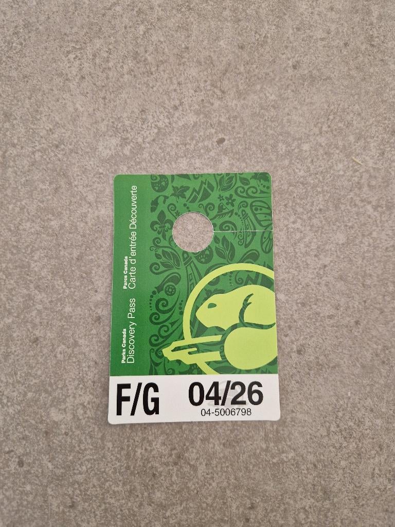 20 mrt 26DidiAalst - Parks Canada Discovery PassDiscovery pass canada, nodig voor bezoek nationale parken. Datum op kaart 04/26, maar werd door parks canada verlengd.