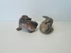 - Royal Copenhagen - Figuur - Pair of Royal Copenhagen dogTwee porseleinen dachshundbeeldjes van royal copenhagen, ontworpen door olaf mathiesen, modelnummers 1407/1408, met de hand beschilderd onderglazuur in bruin en beige, circa 11 cm lang, 6–8 cm hoog en