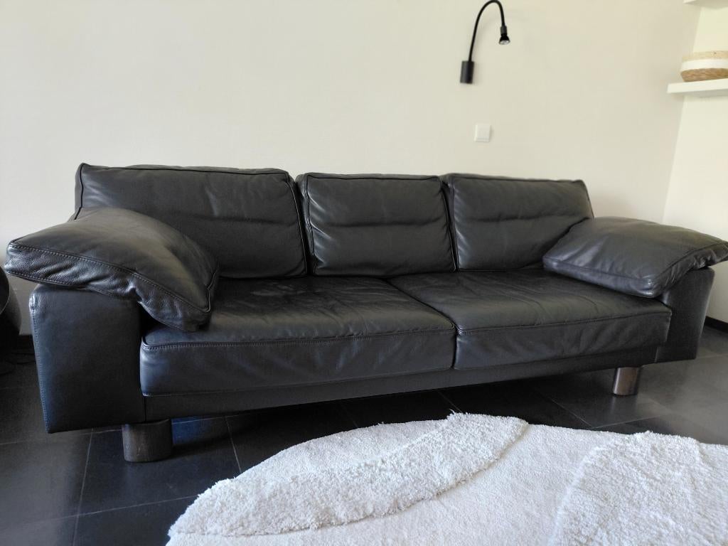 14 feb 26Hendrik De SchrijverHeule - Salon Rolf BenzLederen salon driezit & tweezit & vier lederen kussens eveneens zelfde leder rolf benz. Merk: rolf benz type: vida kleur: zwart beugelvoet van metaal zijdeel breed houten binnenframe, stalen oZo goed als nieuw Ophalen Vierpersoons of meer