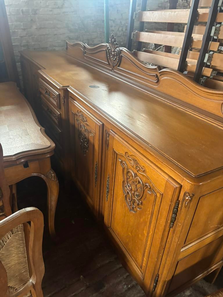 16 mrt 26HansNevele - massieve eetplaatsMassieve eetplaats in franse eik bestaande uit dressoir, barkast en eettafel met 6 stoelen.in uitstekende staat.alles kan ook apart gekocht worden.Gebruikt Ophalen