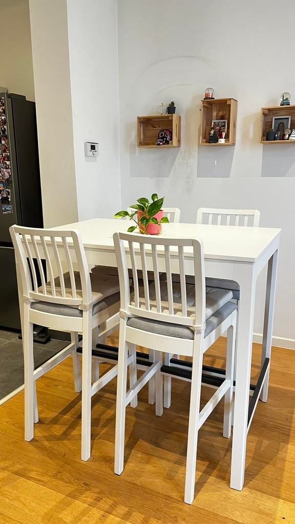 8 apr 26K. ❤️Grobbendonk - Ikea Ekendale high white table and 4 chairsUnique high table and chairs. 6 Months use. Table measurements: 120x80x105cm comes with protective cussions. A few scratches, barely visible.Zo goed als nieuw Ophalen Vier personen