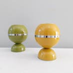 6 feb 26Hasselt-vintageHasselt - Lampe (2) - Globe oculaire, à l’ère spatiale - Métal laquéDeux lampes de bureau vintage en métal émaillé, modèle eyeball space-age, originaires d’italie et datant de 1970–1980, en bon état avec des traces d’usure, chacune avec un cache-bougie de 13 cm de dia