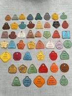 Oude fietsplaatjes blik in lot te koop.