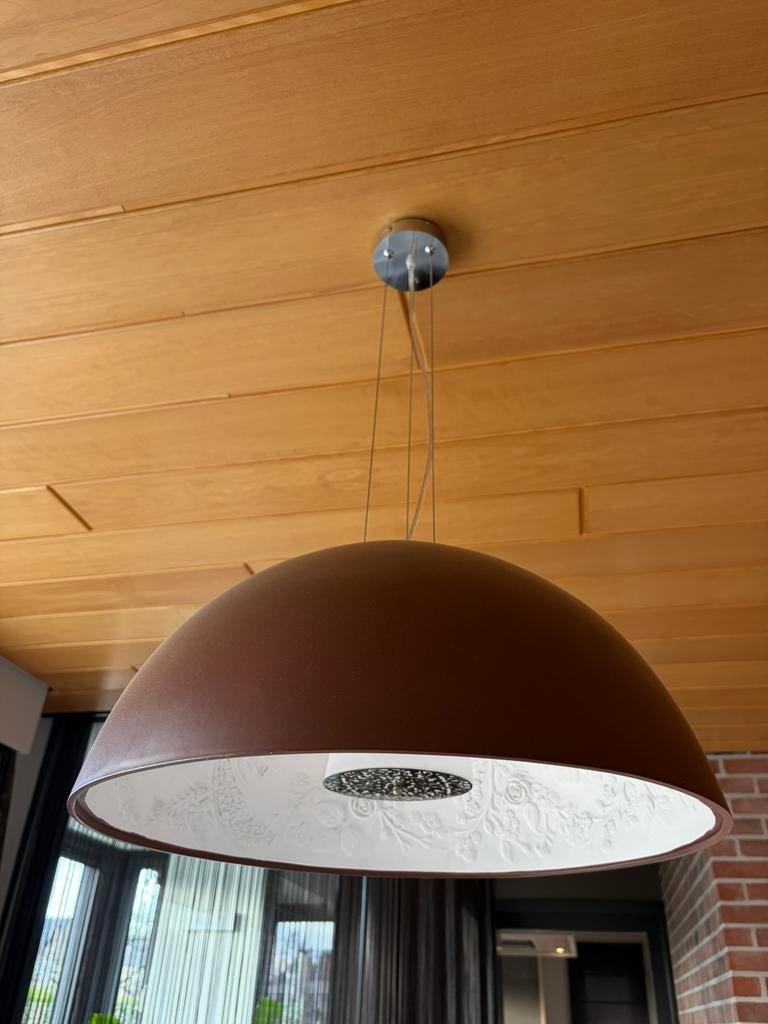 - Hanglamp koepel "Flos Skygarden"Diameter : 90 cm ; roestbruin ; oersterk design ontwerp door marcel wanders "flos skygarden" moderne buitenkant (staal) klassieke binnenkant (gips) met prachtig romantisch patroon vol met weOphalen