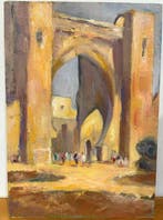 7 apr 26TopadvertentieCatawikiHeel België - Franse school (XIX) - Puerta de la medina - EscenaOlie op doek in orientalistischer stijl, xixe eeuw, die een monumentale toegangspoort tot een noord-afrikaanse of oosterse stad afbeeldt, met figuren in traditionele kleding die onder de grote spitsbo