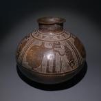 GisterenSamyMol - Nazca - Huari, Peru Terracotta, Aardewerk Versierde pot. ØGedecoreerde urn uit nazca-huari, peru, gedateerd op circa 600–800 na chr., Vervaardigd uit terracotta met pigmenten, diameter 17 cm en hoogte 14 cm, in goede staat. Decoratieve kruiknazca - huari, pe